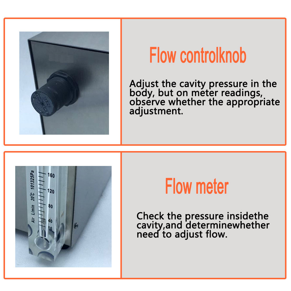 - The device includes a flow meter, compressed air inlet, and flow control knob that allow users to regulate airflow and pressure inside the sampling chamber. The sampler can be connected to planktonic microbial acquisition equipment and dust particle counters, enabling comprehensive environmental monitoring.